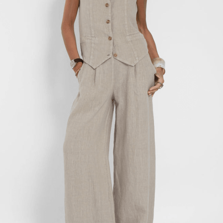 コットンとリネンの2ピースセット、カジュアルなボタン付き