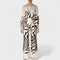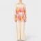 クラウディア™セットは、スタイルと態度の真の爆発です – 目立つことを恐れない女性のためにデザインされています。柔らかいクリーム色の背景に鮮やかなピンク、オレンジ、赤の波状プリントが施されたこのアンサンブルは、純粋なエレガンスとフレアを放っています。アシンメトリーなトップは広い袖のディテールで遊び心と動きを与え、フレアパンツはシルエットを引き伸ばし、体を美しく見せます。夏のパーティー、バカンスのスタイル、またはスタイルと快適さで輝きたいあらゆる場面に最適です。