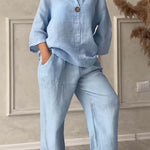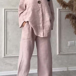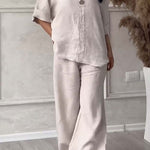 コットンとリネンの2ピースセット、カジュアルなボタン付き