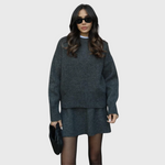パウラ™セットは、スタイルと快適さを一つにまとめています。柔らかく、暖かいニット生地で作られており、エレガンスを失うことなく最高の着心地を提供します。ラウンドネックのセーターと完璧に調和したパンツが、上品でリラックスしたルックを生み出します。自宅での快適な日々や、街でのスタイリッシュな登場に最適です。