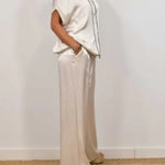 • 時代を超えた魅力 – 流れるような生地とリラックスしたカットが、優雅で自信に満ちたルックを作り出します。