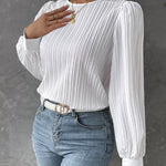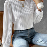 • 時代を超えたクラス – 控えめなラウンドネックとエレガントなランタンスリーブが、シックでフェミニンなルックを演出します。