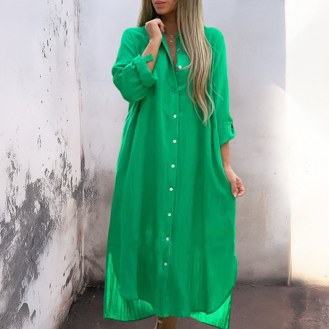 マリー™ シャツドレスであなたの自然な美しさを引き立てましょう - エレガンスとカジュアルな雰囲気を見事に融合させた、軽やかでスタイリッシュなマストハブです。快適さと個性を重視する女性のためにデザインされたこのブラウスは、どんなアウトフィットもユニークにします。