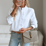 軽やかなブラウスローラ™は、スタイルと快適さが両立する暖かい日の完璧な解決策です。この洗練されたブラウスは、クラシックなルックとカジュアルな着心地を兼ね備えており、夏の気温でもエレガンスを放ちたい女性に最適です。ランチ、夕方の散歩、オフィスでも、ローラ™はあなたの新しいワードローブのヒーローです。