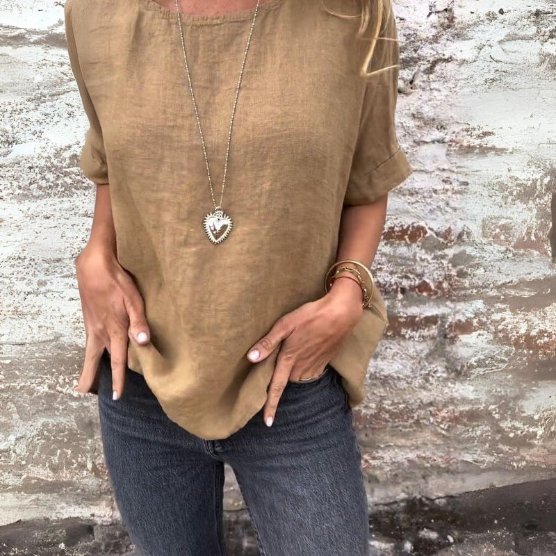 Dinie™ | エレガントな短袖コットンブラウス