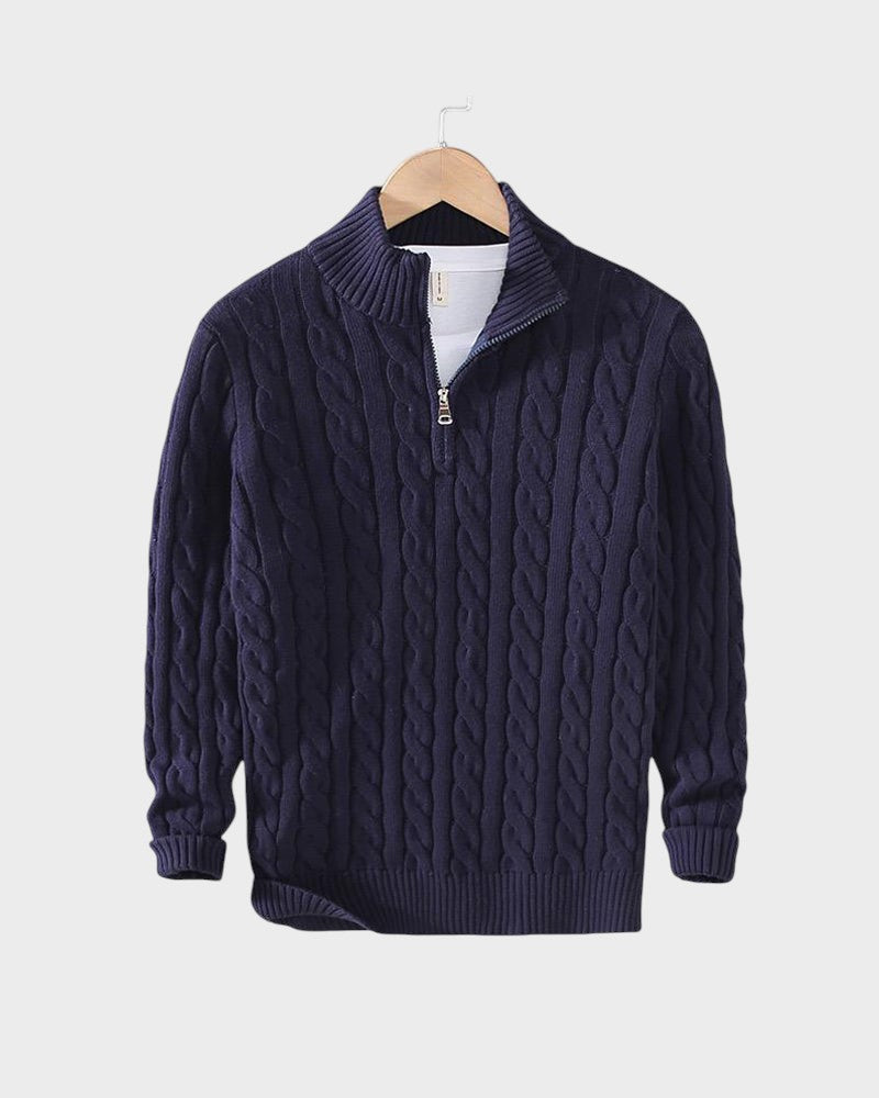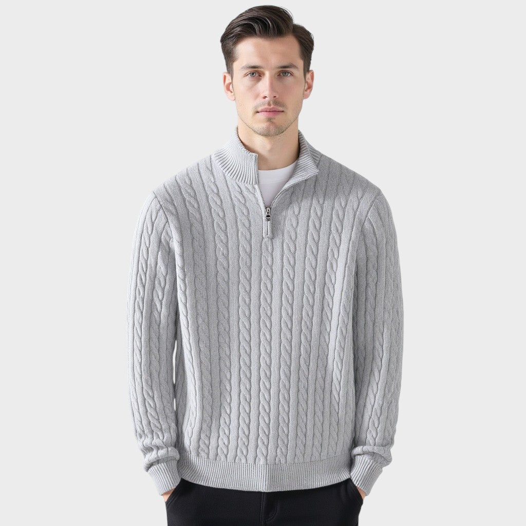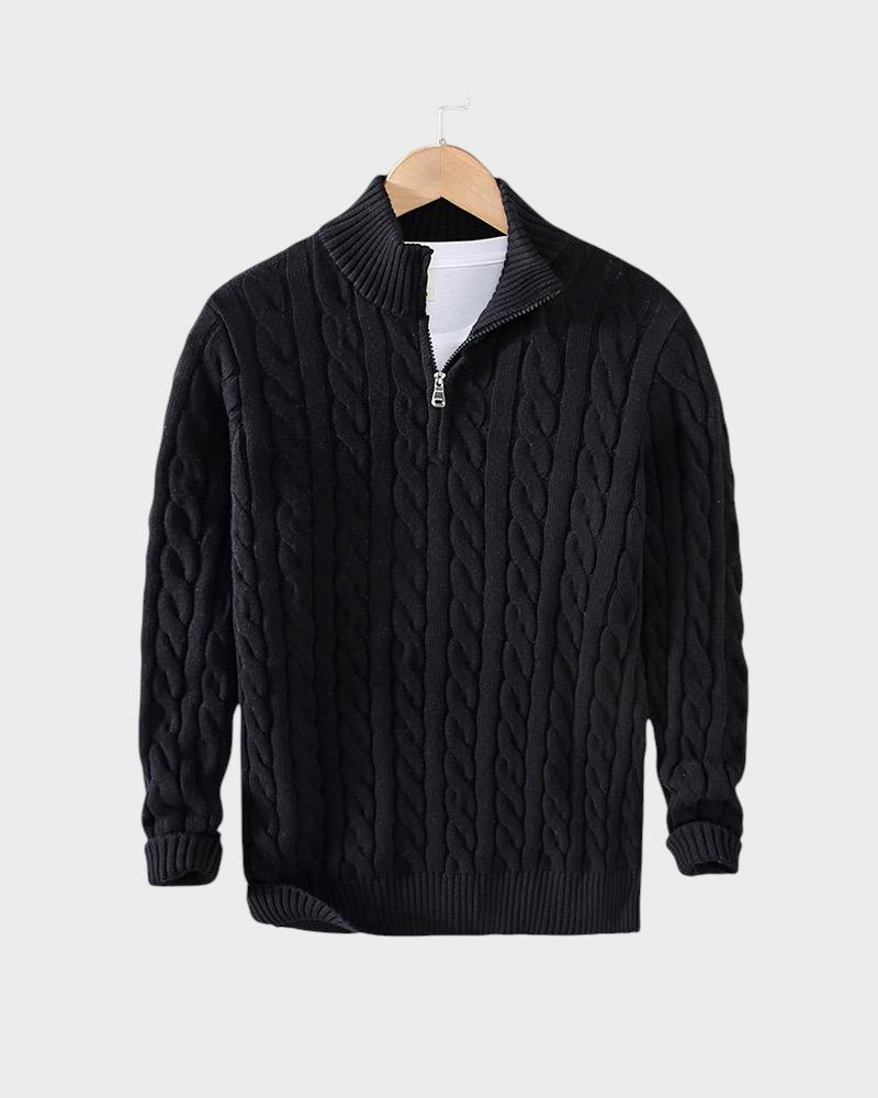クラシックなデザインとモダンなアクセントを組み合わせたスタイリッシュで快適なプルオーバー。柔らかく高品質な素材で作られており、1日中快適さと温かさを提供します。繊細な編み込みのディテールが洗練さを加え、上部のジッパーにより気分や場面に応じて簡単に調整できます。日常使いにも、よりエレガントな場面にも適しています。